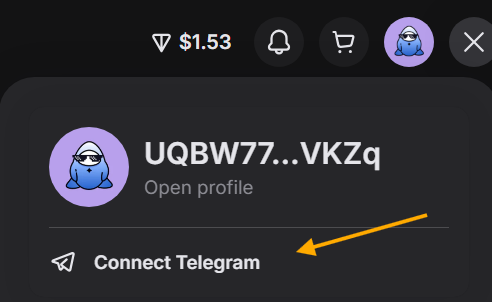 To link your Telegram account and start receiving notifications through the @getgemsnftbot, simply follow these steps: