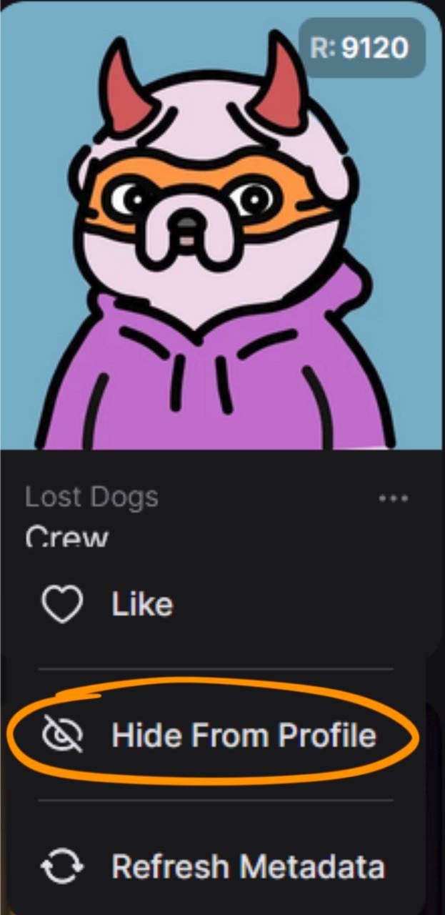 - The NFT will now be marked with a "Hidden" banner and won't appear on your profile until you refresh the "Collected" page.