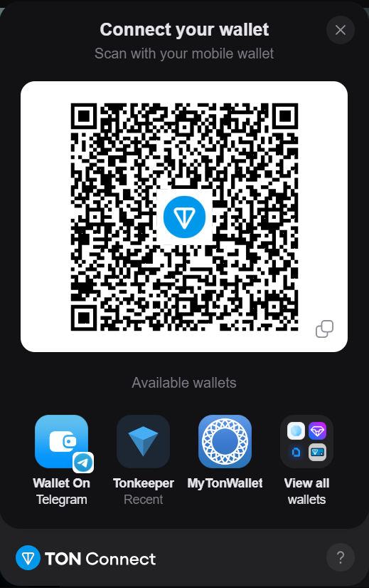 - In the TON Connect window, select the wallet app you want to log in with.