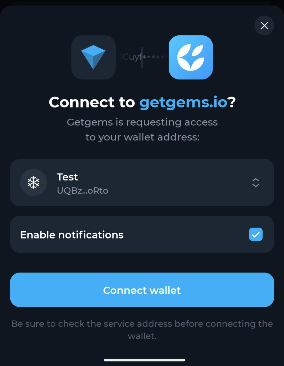 - Click the "Connect wallet" button in the pop-up window of the wallet app. In the application, in the window that opens, click the "Connect wallet” button.