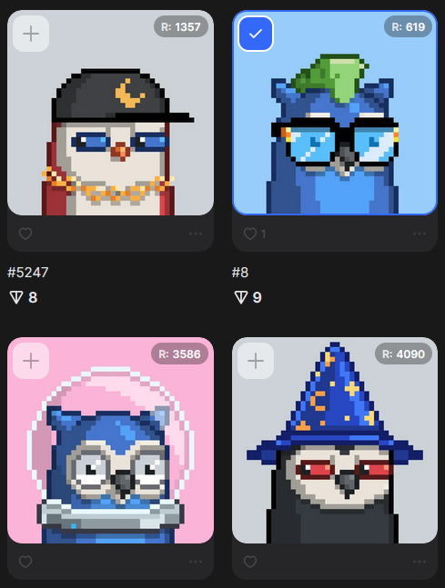 In this mode, a "plus" icon will appear on the NFTs. Click it to add the item to your cart: