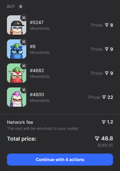 Users can use the cart to perform several actions with NFTs by signing a single transaction in their wallet: