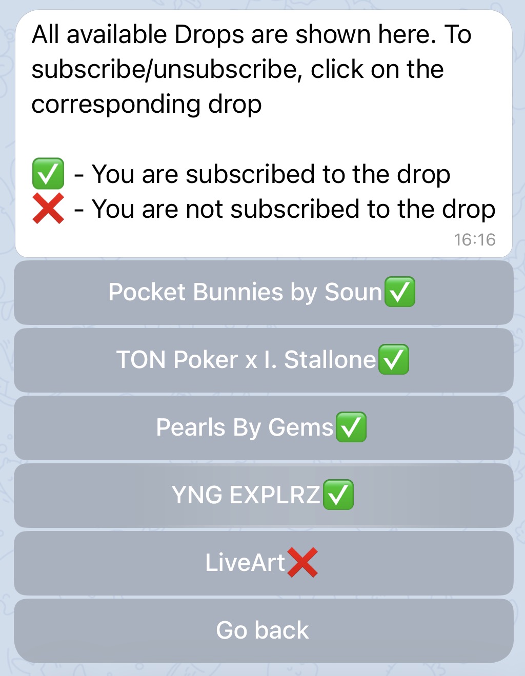 6. Once you see a green checkmark emoji, you’re successfully subscribed to the Drops!