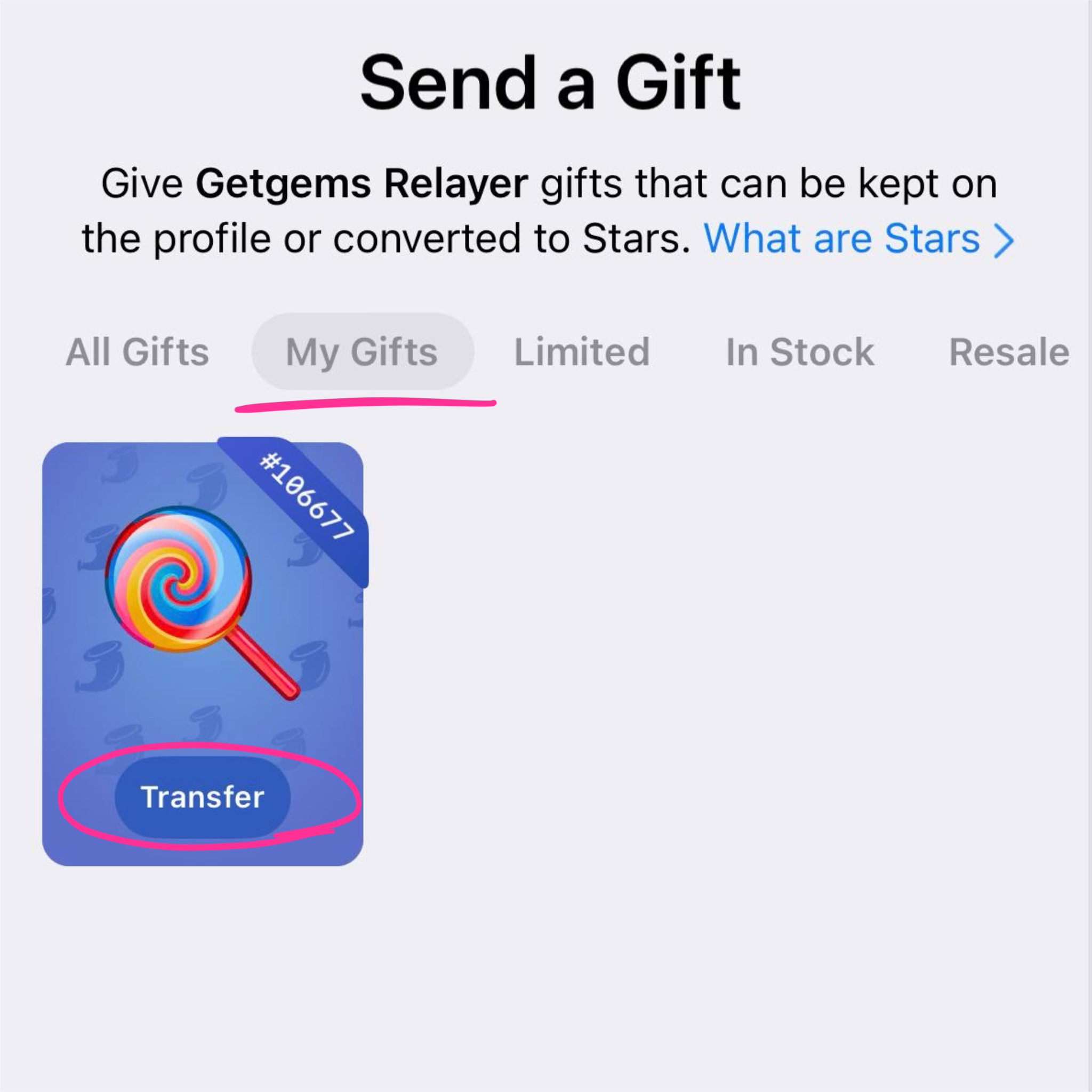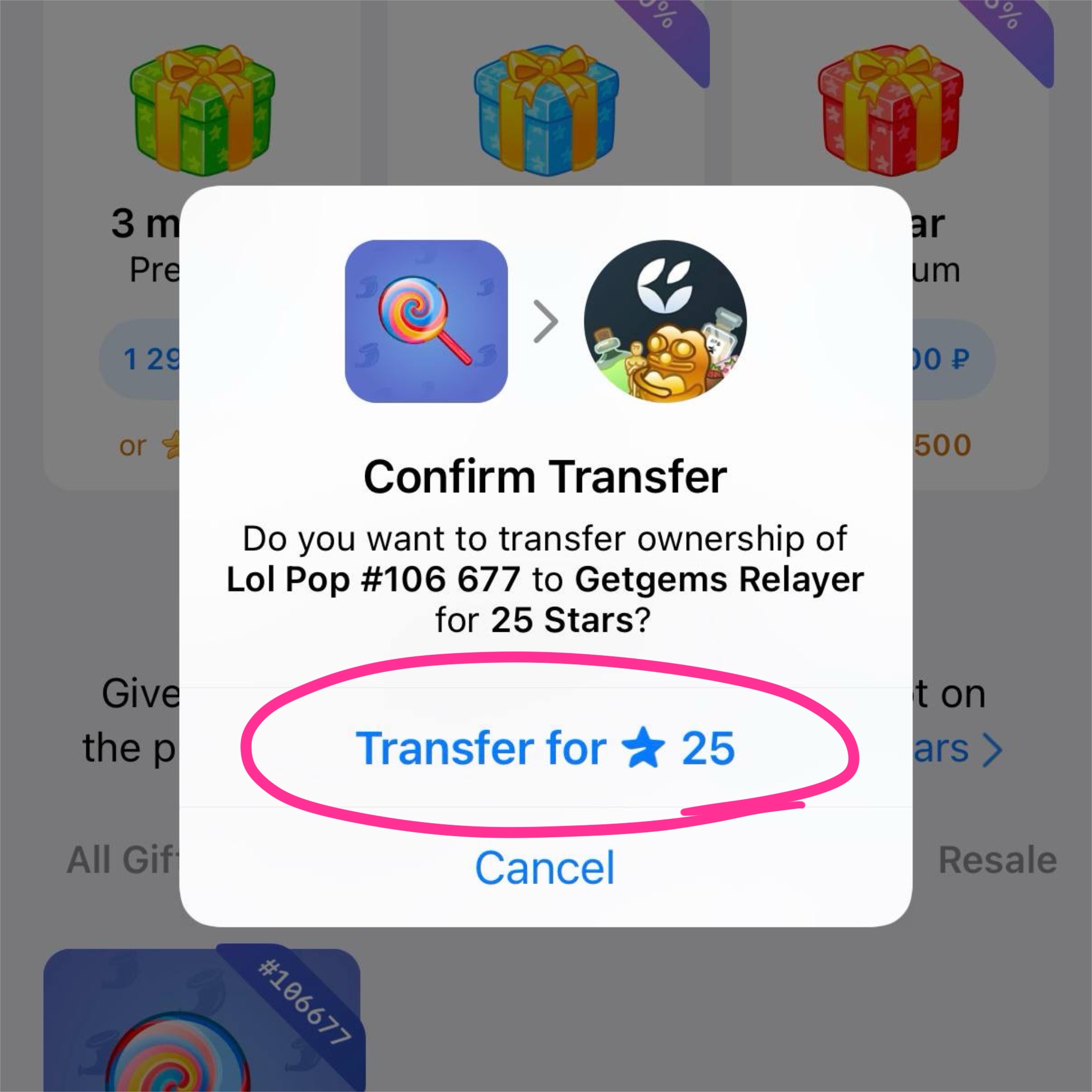 4. Select the gift and send it to Getgems for 25 stars.