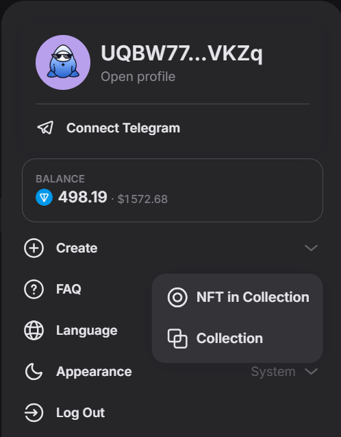 Getgems has a ready-made tool for creating your own NFT collection on The Open Network. To create a collection, follow these steps: